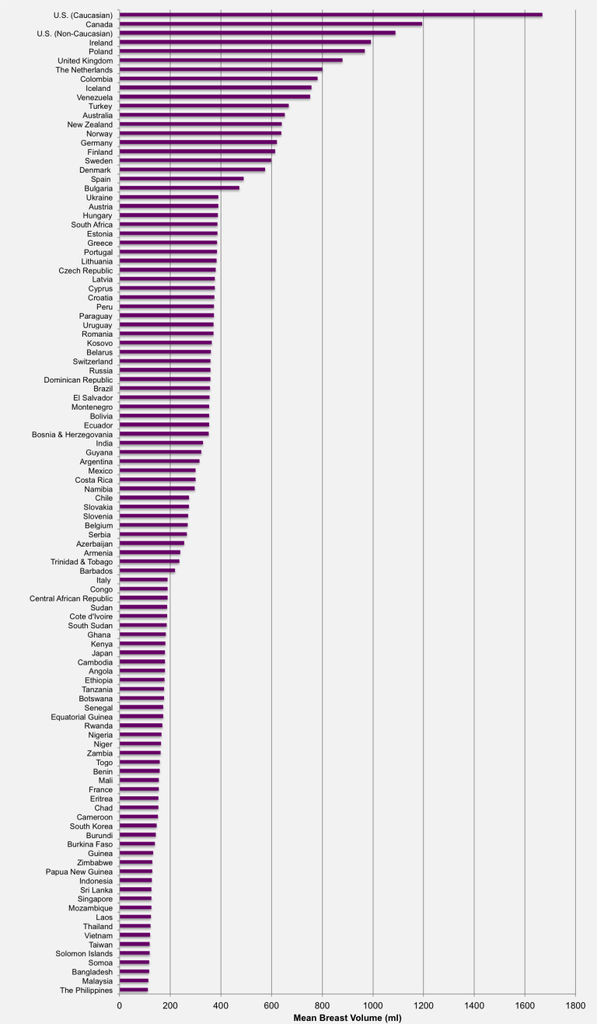 女性のおっぱいが最も大きい国・最も小さい国はどこ? 学者が世界108カ国で調査