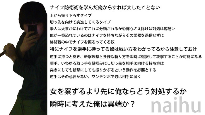 ナイフに限らず、刃物で防御なんて超緊急手段の結果でしかないんだぞ。