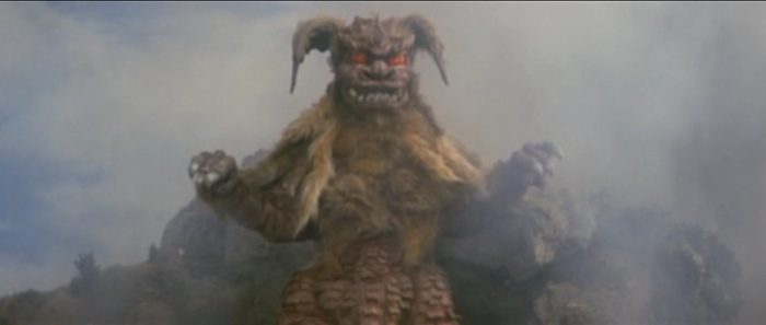 琉球に危機が訪れる時、眠りから覚めると言い伝えられている。沖縄県恩納村の万座毛の岩壁内部に眠っていたが、「美童(みやらび)の祈り」という唄で目覚めて活動を始めた。当初はゴジラから沖縄を守るものと思われていたが、実際にはメカゴジラを敵と認識して戦いを挑んだ。走力や跳躍力に優れ、全力疾走からの頭突きや体当たりなど、積極果敢な戦いを見せる。また、光線を右眼から吸収し、威力を10倍に増して左眼から発射するという特殊能力を持つ。この能力でメカゴジラのスペースビームを跳ね返して善戦するが、ビーム以外にも豊富な武装を持つメカゴジラに対しては決定打とならず、次第に劣勢に追い込まれる。遅れて参戦してきたゴジラと協力することで、かろうじてメカゴジラの撃破に成功した。長時間の活動はできない怪獣であり、戦いが済んだ後は岩壁の中へ戻り、再び眠りについた。
