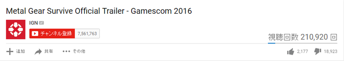 COD公式チャンネルでの低評価は1000ぐらいMGSの方が上やで
