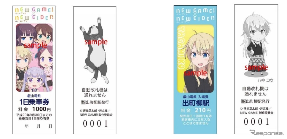 叡山電鉄(京都市左京区)は8月15日、アニメ「NEW GAME!」のキャラクターを券面に描いた1日乗車券と特別入場券を発売すると発表した。8月27日と9月18日には特別発売会も行われる。