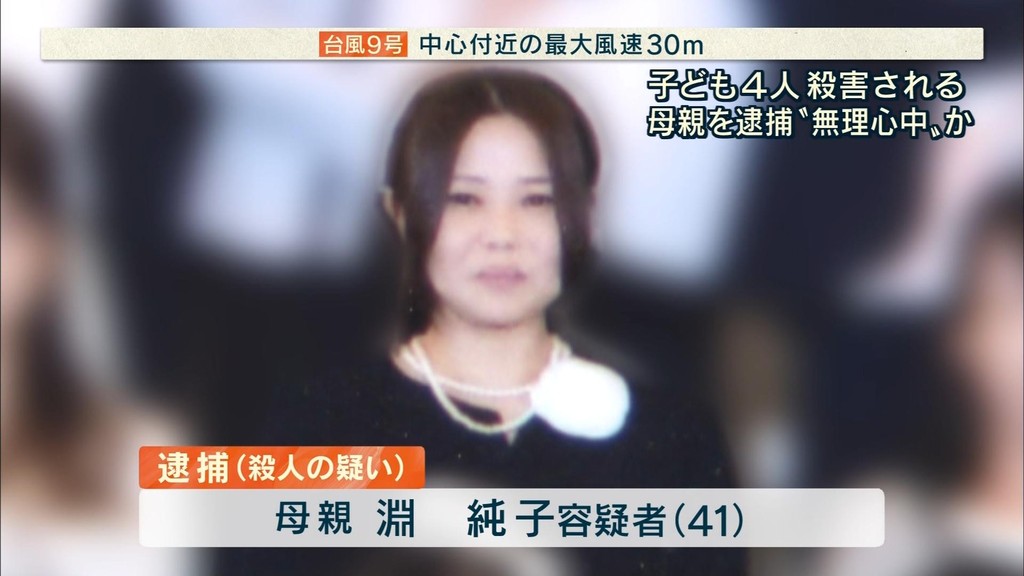 県警は同日夜、4人の母親で無職の淵(ふち)純子容疑者(41)を殺人の疑いで逮捕し、発表した。
