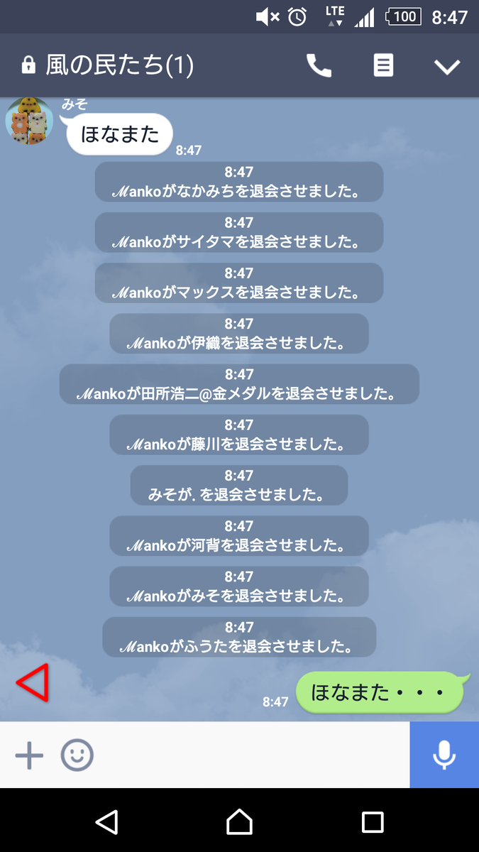 ほぼ全員が追放しあって最後の一人も自主退会しグループは消滅