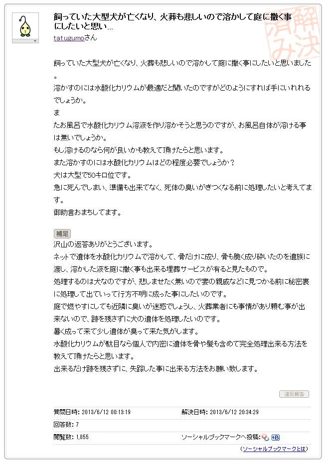 関連記事知恵袋「TorrentでOSを落としたんですが・・・」 回答者「!!!」シュババババ(走り寄ってくる音)【悲報】ヤフー知恵袋答えになってない知恵袋の女の子、精通を痛いものだと勘違いするwwwwww知恵袋で面白い女の子見つけたwwww【悲報】なんJ民、Yahoo知恵袋でふざけるもマジレスされる母親「娘が憎くてたまらないのですがこれは異常でしょうか?」ワイの知恵袋の質問が削除されたんやが