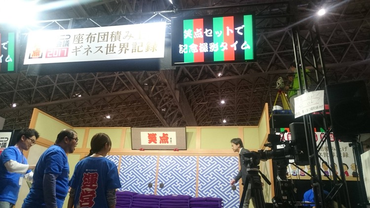座布団積み上げのギネス記録に挑戦する