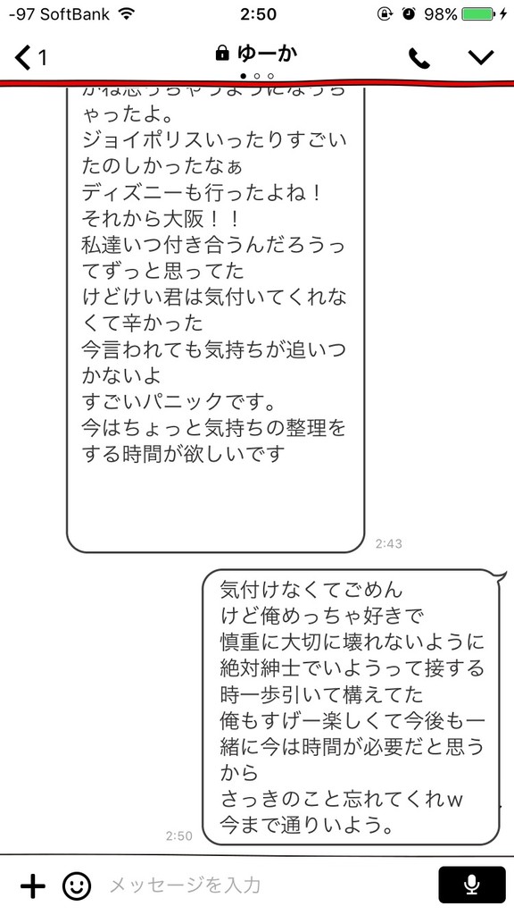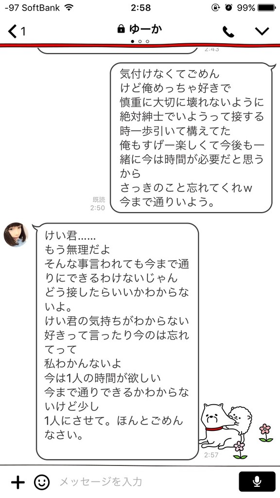 助言してくれた人を罵倒したりするしゆーかちゃんはこんな奴と付き合わんでよかったな。