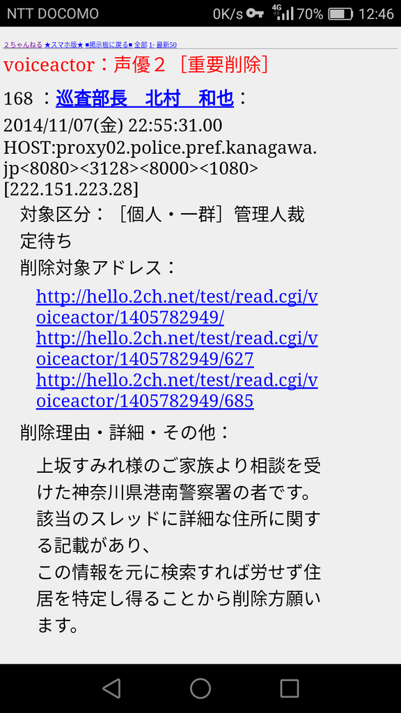 「2ちゃんねる」で声優の上坂すみれさんに殺害予告した容疑で、高専生を逮捕