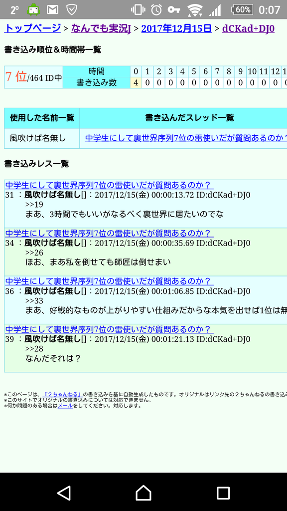 ちなみに俺は5963位。最近やっと静電気程度の雷(イカヅチ)を習得した