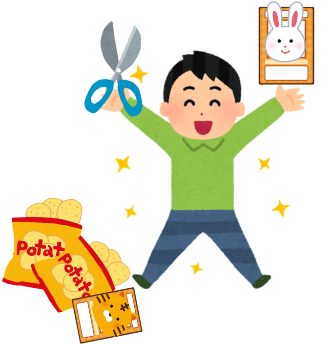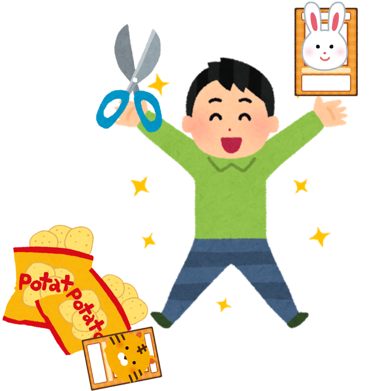 おまけのカード付きのポテトチップス25袋(1袋90円、計2250円)のおまけの袋をはさみで切った疑いがある。同容疑者は、計35袋のおまけの袋を切り、