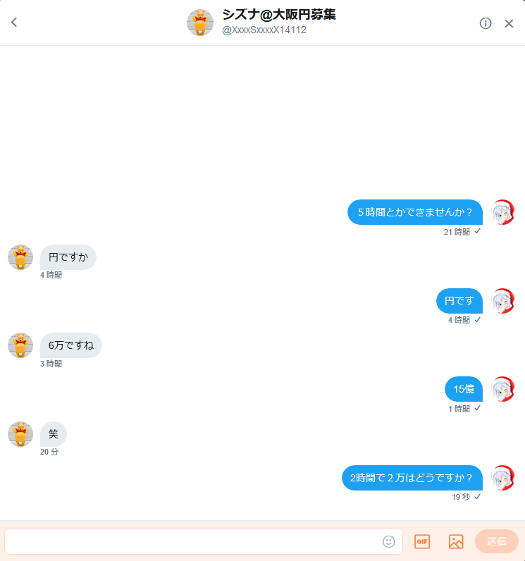 なんか2時間で2万2千円どうですかとかナマイキ聞いてきたから無理って言っといた