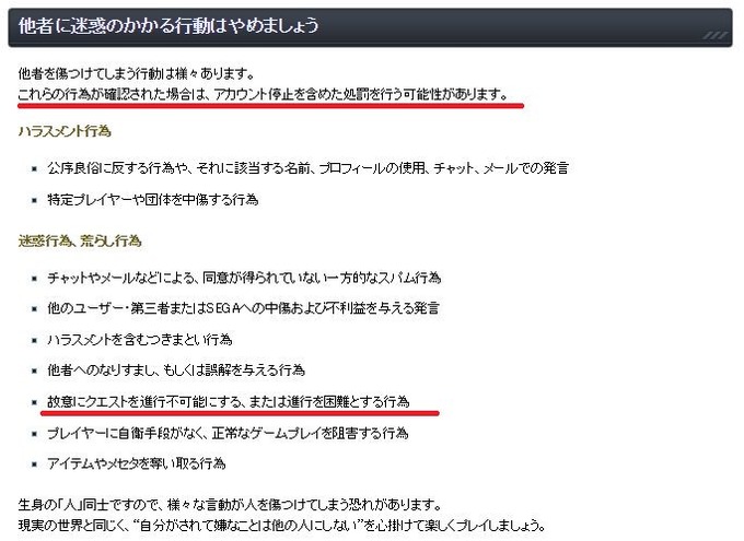「クエスト中に周りのプレイヤーのことを考えずにクエストを破棄するのは迷惑行為」としてBAN対象と宣言