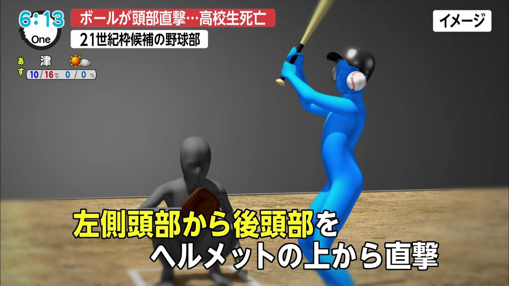 練習試合で頭部死球で無事死亡