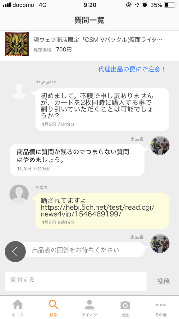 他の出品者に対して注意喚起も兼ねてこの馬鹿を晒してるだけだぞ