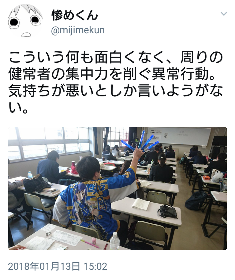 引用元http://tomcat.2ch.sc/test/read.cgi/livejupiter/1547873310センター試験斜め前のやばいやつの状況更新していくか😇 pic.twitter.com/jdEr9j0v04