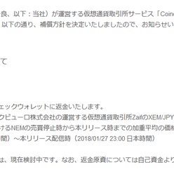 【仮想通貨】取引所のコインチェック、NEMの補償を発表!お金が帰ってくるぞおおお