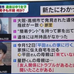 大阪高槻市少女殺人事件の被害者の少女は行方不明の中1少女と判明 (画像あり)